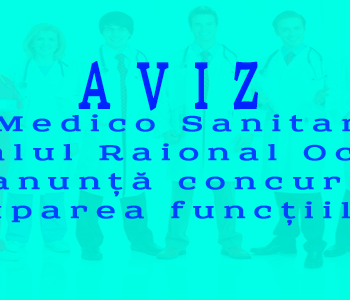 Instituţia Medico Sanitară Publică Spitalul Raional Ocniţa anunţă prelungirea termenului depunerii dosarelor la concursul pentru ocuparea funcţiei vacante: — Şef secţie reabilitare inclusive îngrijiri palliative; — Şef secţie AMSA (Consultativă), care va avea Ioc la data de 11.06.2025 orele 10.00. Responsabil de oferirea informaţiilor suplimentare şef serviciu resurse umane Lilia Gadîmba , tel. de contact […]